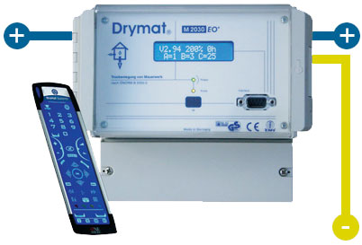 Eigentlich funktioniert das System von Drymat® sehr einfach. Es wird über Elektroden ein schwaches Feld aufgebaut. Dieses verändert die Potenzialspannung des eingelagerten Wassers. Es wird quasi umgepolt. So kann die Feuchtigkeit in den Wänden nicht mehr hochsteigen, sondern sinkt nach unten weg. Es wird aus dem Mauerwerk zurück ins Grundwasser bzw. in Höhe der eingebrachten Kathoden gedrängt. Der große Vorteil dabei liegt darin, dass das Mauerwerk nicht wie bei thermisch arbeitenden Trocknern übertrocknet wird. Das hätte unter Umständen Risse und Ablösung des Putzes zur Folge.